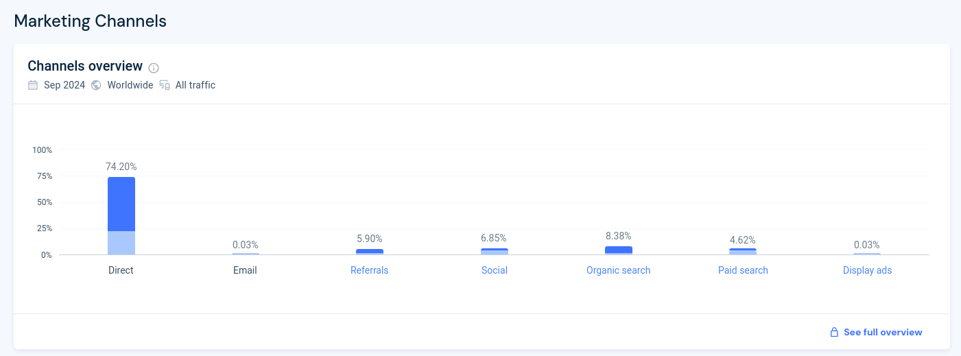 24% USA traffic and 74% direct traffic shows that its a powerhouse in the industry.